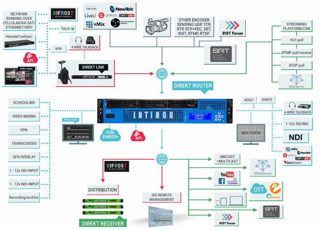 The Direkt-series is designed from the ground up for managing, processing and output of IP-streams. Instead of using cloud services, which involve cost and increased management overheads, you can own and scale the functionality of the Direkt router to meet your needs.